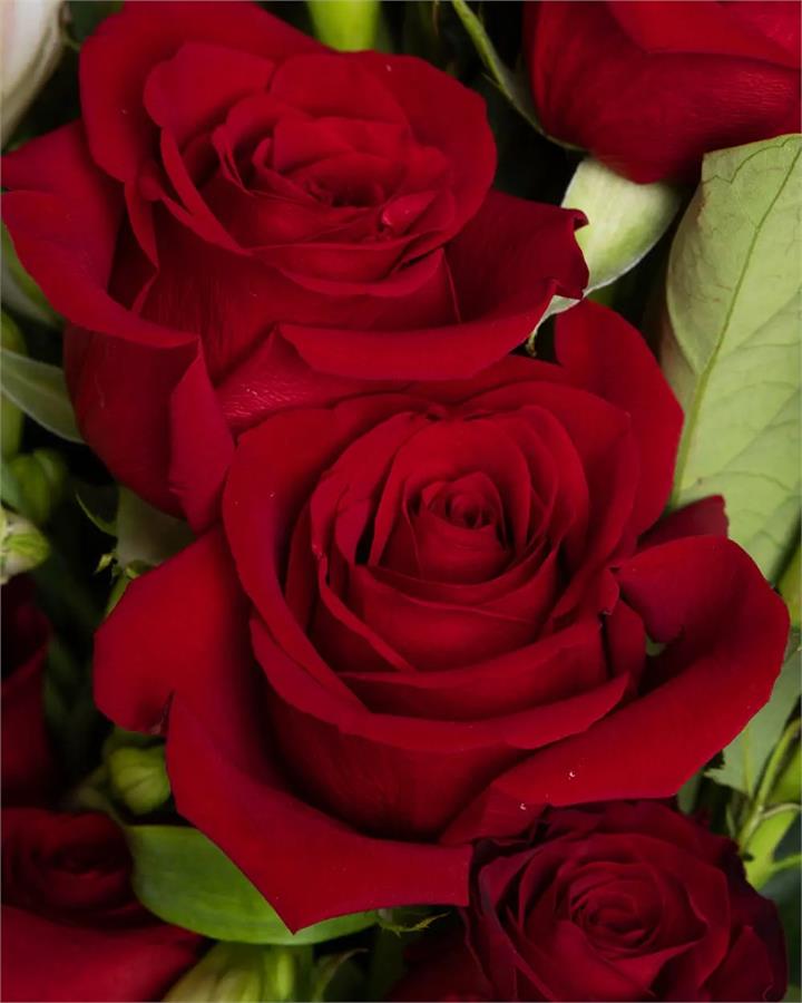 Complemented by fresh Alstroemeria and lush Viburnum foliage, this stunning floral design will have your flame glowing red with delight. It is the perfect way to say, “I love you”!