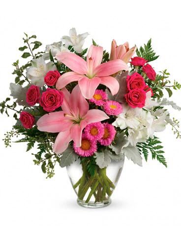 Sure to make them blush! Spoil them on a special day, or just because, with this luxurious lily arrangement in gorgeous shades of blush pink.